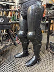Full armor legs “super black”A convenient full blackened set of anatomical legs, which is comfortable and high-quality worn!Production hardened steel 30 hgsa 1,2-1,5 mm!Purpose for full-contact medieval fencing and buhurt! Universal set that is combined with most sports armor sets!completed:armor hips "super black"armor shins "super black"armor shoulders "super black"Weight of standard set 9 kg.